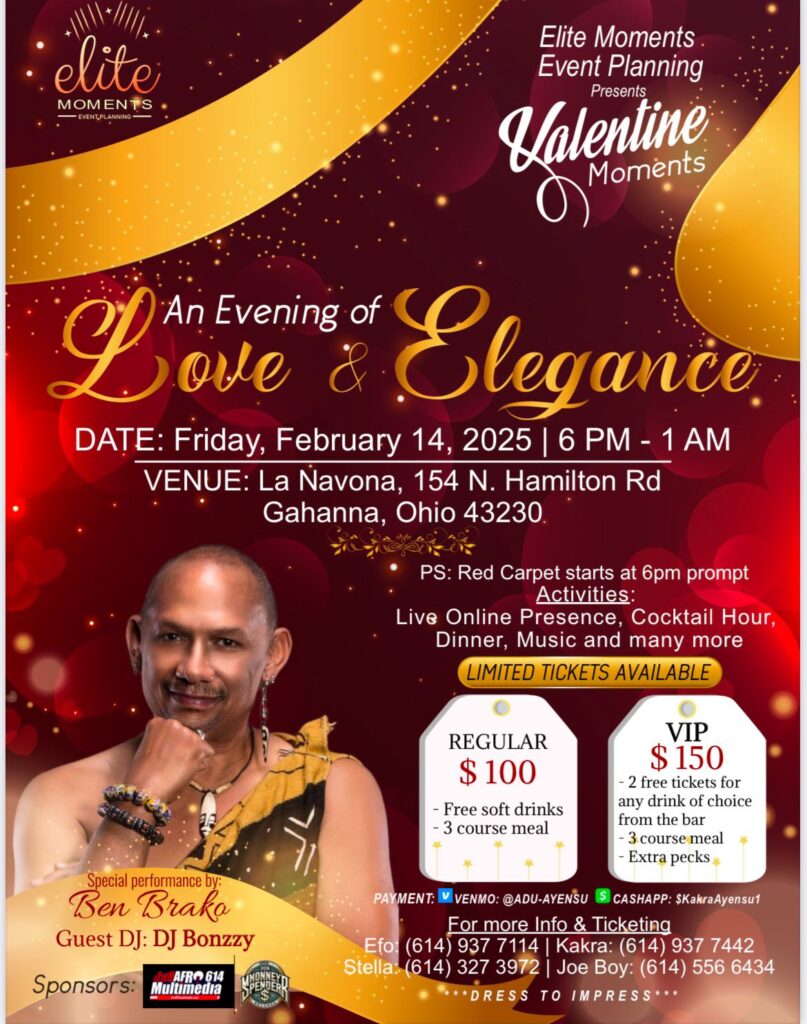 Details, including venue and tickets, are announced (details on flyer below) anticipation is already building. Ben Brako who made it to the ohioconnects.com 2024 Top Ten Ghanaian Musicians in Ohio performances are known for their electric energy, romantic atmosphere, and timeless appeal, making this show the perfect place to celebrate love in all its forms.